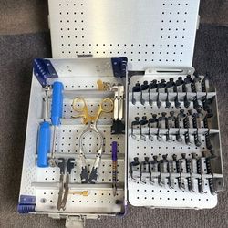 Conjunto de instrumentos quirúrgicos ortopédicos para columna vertebral, completo con estuche retractor de implantes